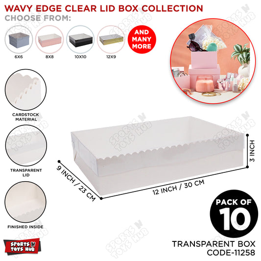 Wavy Edge Clear Lid Box 9x12x3 Inch - Pack Of 10