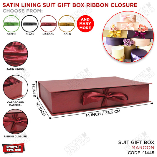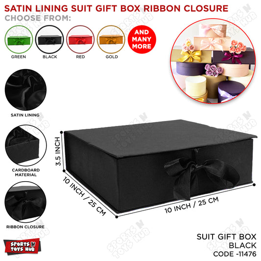 Satin Lining Suit Gift Box Ribbon Closure - 10 x 10 x 3.5 Inches