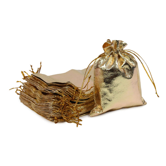 50 pcs Metallic Foil Finish Organza Fabric Drawstring Pouches – Perfect for Nikkah Bid, Wedding Favors & Gift Packaging