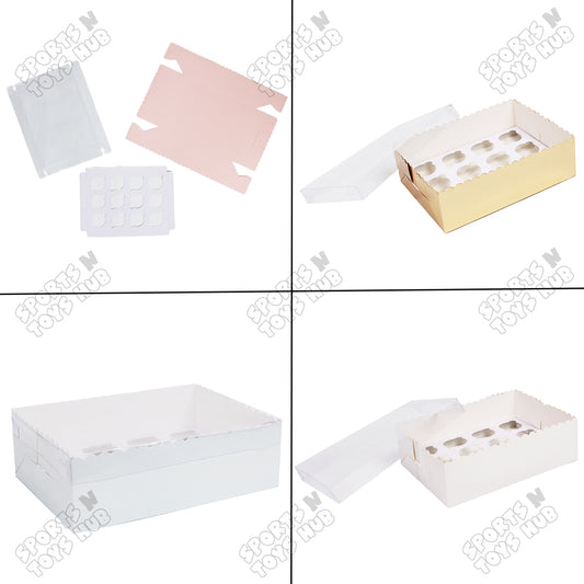 Wavy Edge Clear Lid Box With 12 Mini Cup Cake Tray 6x9x3 Inch - Pack Of 10
