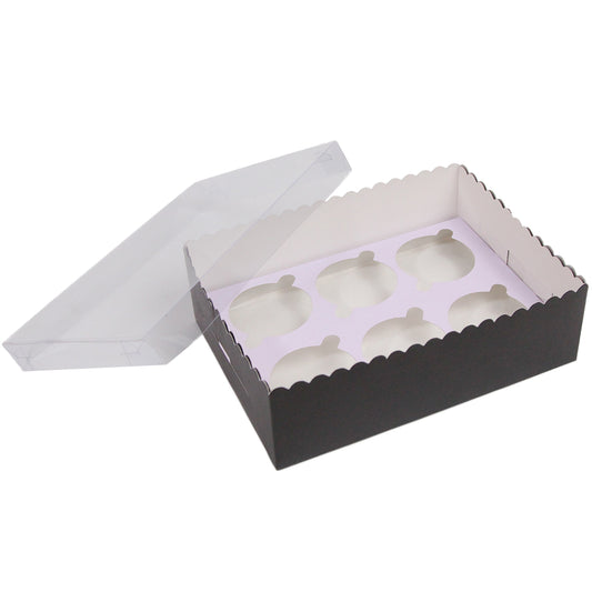 Wavy Edge Clear Lid Box With 6 Regular Cup Cake Tray 6x9x3 Inch - Pack Of 10