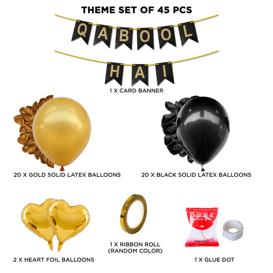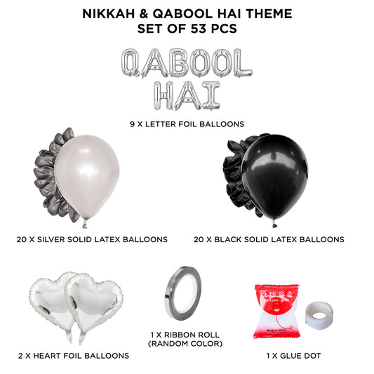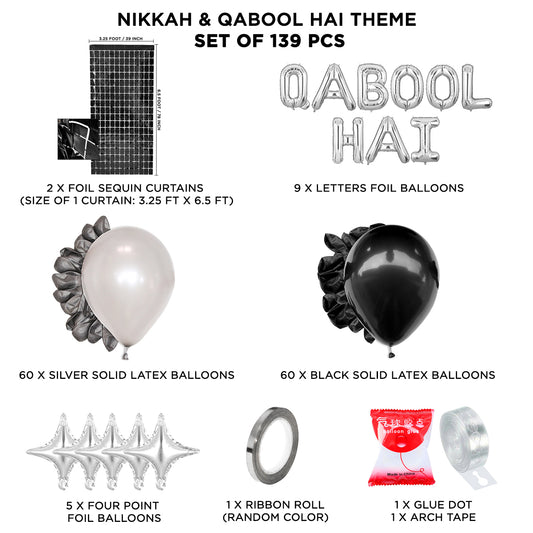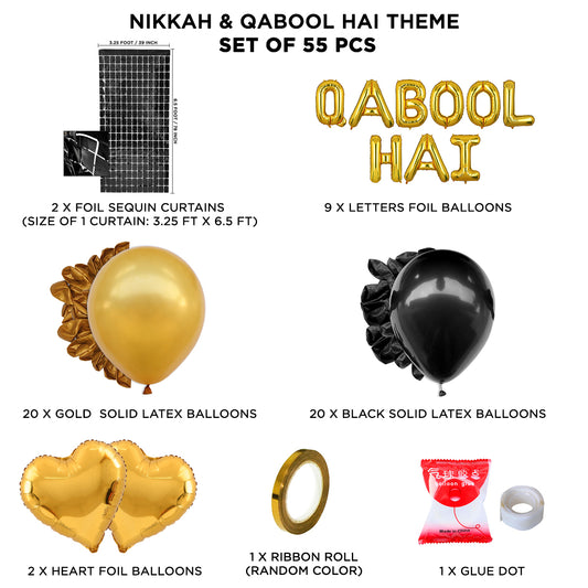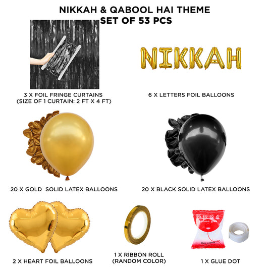 Nikkah and qubool hai wedding event decoration and celebration. giveaways favors and boxes for takeaway, cake toppers curtains hangings and balloons