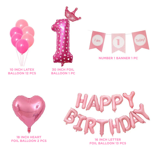42 Inch Blush Pink Crown Number Foil Balloon Collection