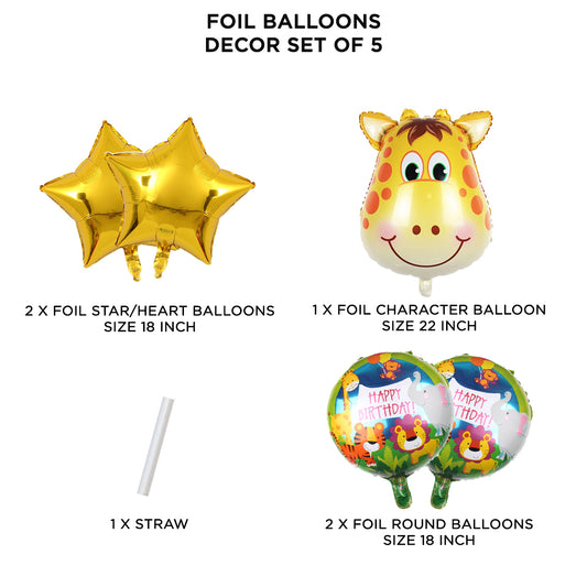 Giraffe Jungle Safari Pack Of 5 Foil Balloon Set