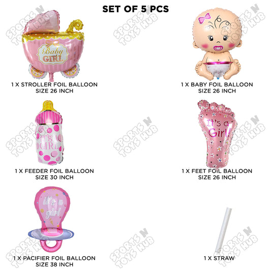 Baby Girl Character Foil Balloon Set Arch Theme Latex and Foil Balloon Kit- Pack Of 100 PCS