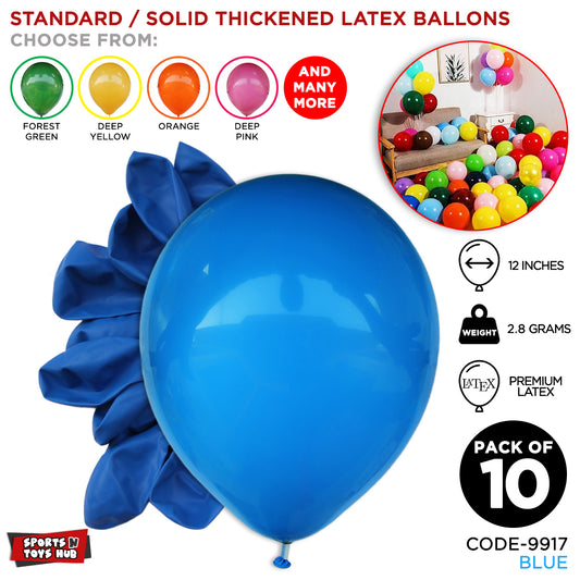 12 Inch 2.8 Gram Solid Latex Round Balloons - 10 Pcs