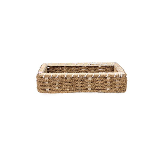 Jute Rope Knitted Rectangle Shape Wooden Basket Collection