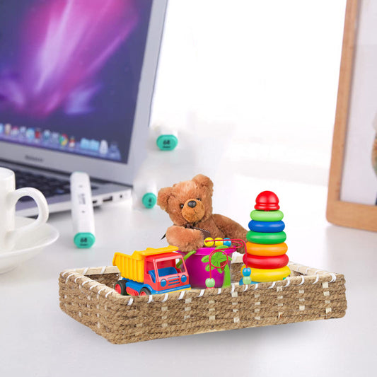 Set Of 5 - Jute Rope Knitted Rectangle Shape Wooden Basket
