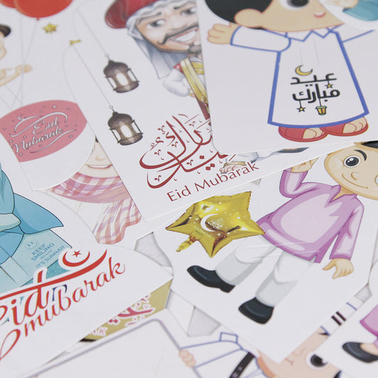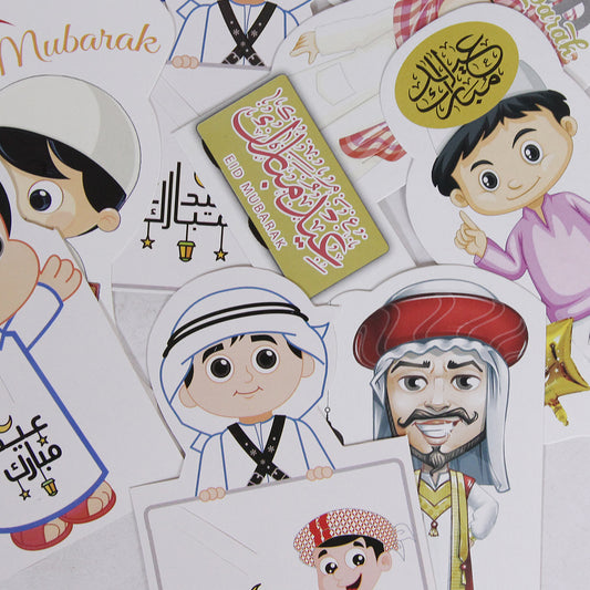 Eid Mubarak Cartoon Character Design Money Envelope - 10 Pcs