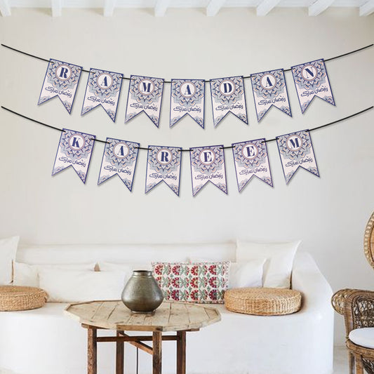 Ramadan Kareem Printed Card Banner - Blue & White