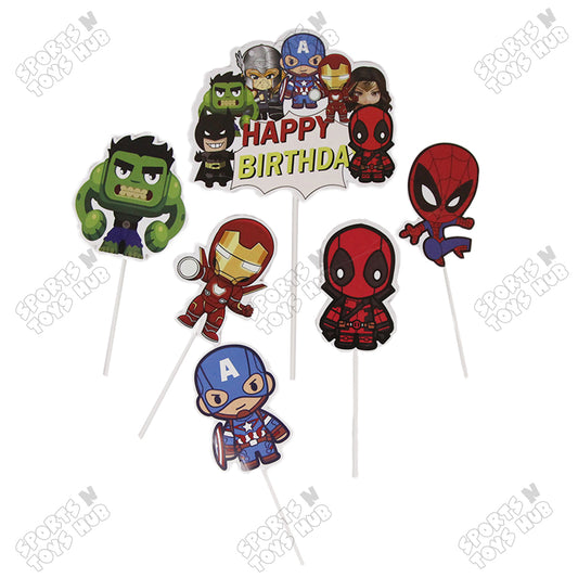 Cartoon Characters HBD @vengers Cake Topper - 6 Pcs