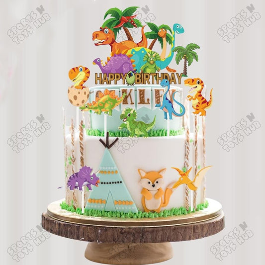 Cartoon Characters HBD Dino Cake Topper - 6 Pcs