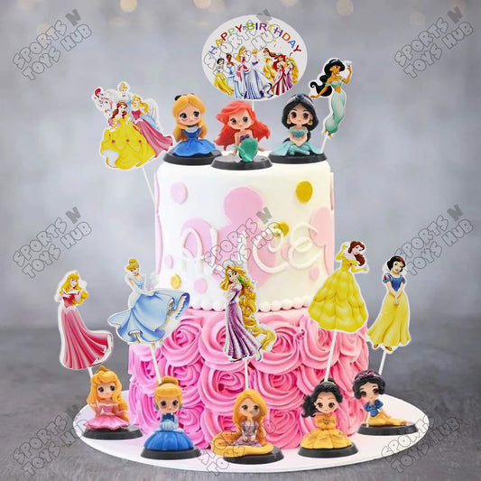 Cartoon Characters HBD Princess Cake Topper - 8 Pcs