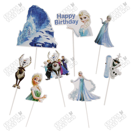 Cartoon Characters HBD Frozen Princess Cake Topper - 8 Pcs