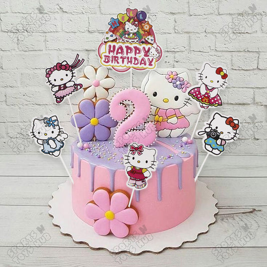 Hell0 Kitty Cartoon Characters Cake Topper - 6 Pcs