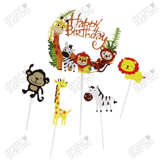 Cartoon Characters HBD Jungle Safari Cake Topper - 5 Pcs