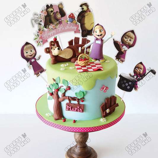 Cartoon Characters HBD M@sha & The Bear Cake Topper - 6 Pcs