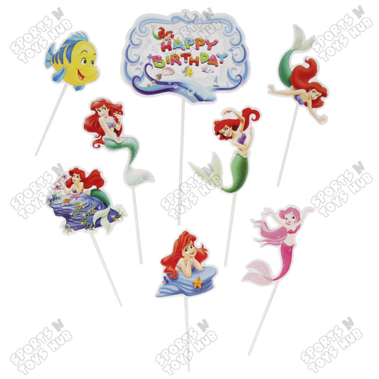 Cartoon Characters HBD Mermaid Cake Topper - 8 Pcs
