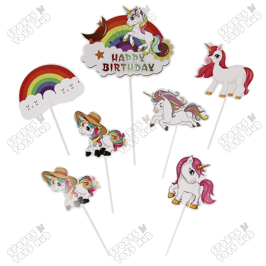 Cartoon Characters HBD Unicorn Cake Topper - 8 Pcs
