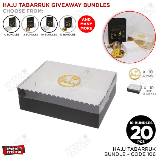 Hajj Tabarruk Bundle - 6x9x3 Transparent Lid Cardboard Box with Acrylic Tag - 20 pcs / 10 Bundles