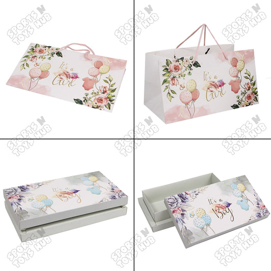 Its A Girl Printed Paper Bags & Box - Pack of 12