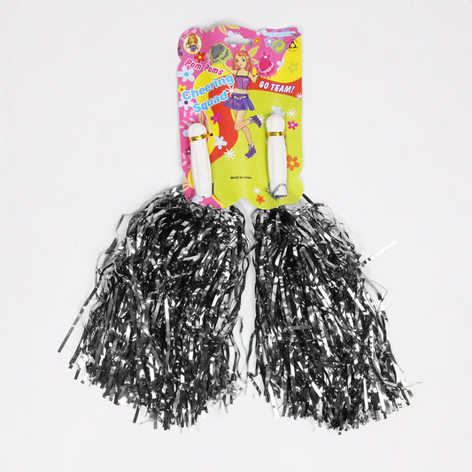 Cheerleader's Tinsel Foil Pompoms with Plastic Grip Handles