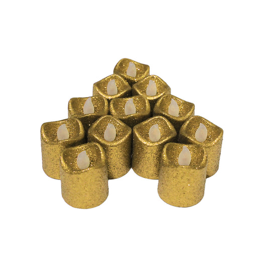 Candle Shape Glitter Warm LED Light - 12 Pcs