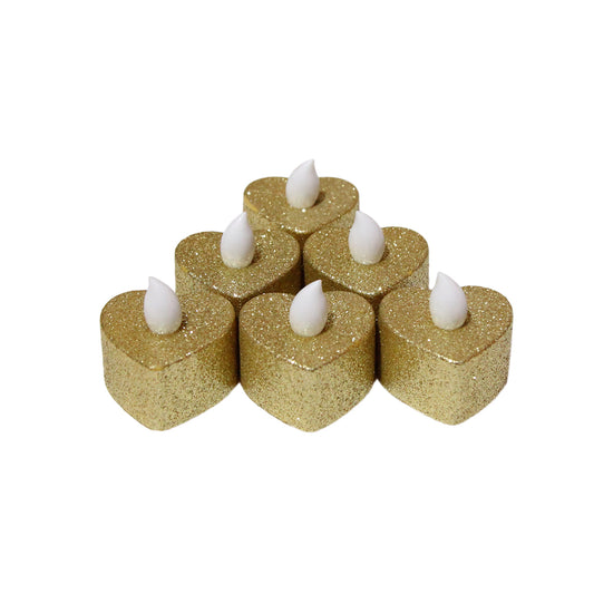 Heart Shape Glitter Warm LED Light Candle - 6 Pcs