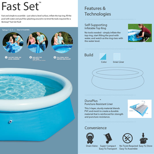 Bestway 10 Foot x 30 Inch Inflatable Fast Set Swimming Pool - 57266