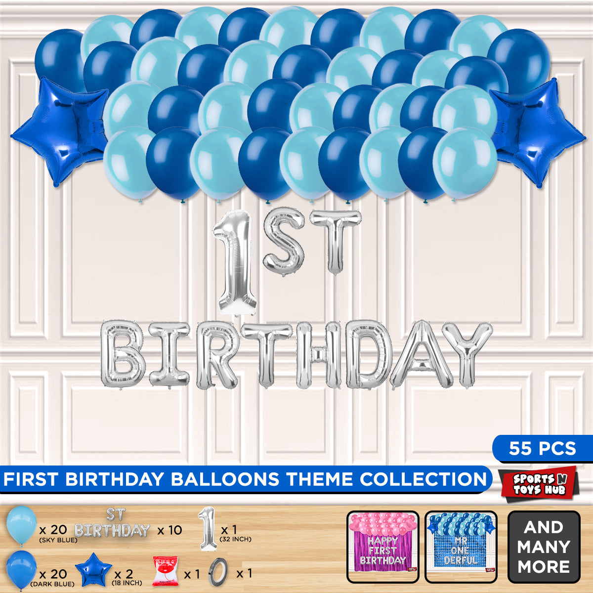 1ST Birthday Foil Letter Theme Without Curtain - Blue
