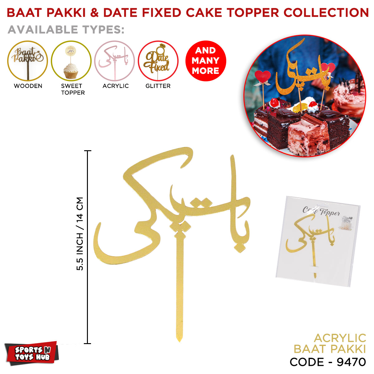 Enhance your special occasion with our Baat Pakki & Date Fix Cake Topper Collection. Choose from a variety of designs and add a personalized touch to your celebration. Made with high-quality materials, these toppers will be the perfect addition to your cake. Bring a touch of elegance and customization to your event with our collection.