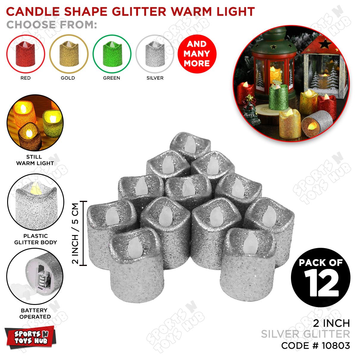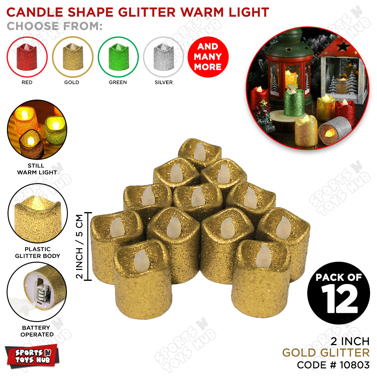Candle Shape Glitter Warm LED Light - 12 Pcs