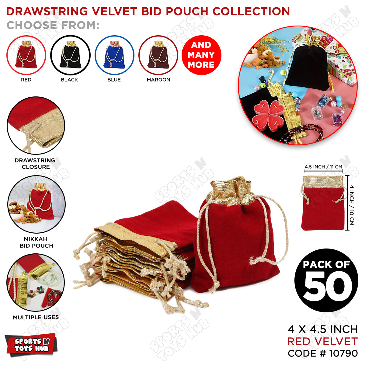 Add a touch of luxury and sophistication to your special events with our Drawstring Velvet Pouch Collection. This set of 50 premium-quality velvet pouches is perfect for gifting, décor, and event needs. Soft to the touch and elegantly designed, these pouches are ideal for a variety of occasions, from weddings to birthdays and more. Crafted from rich velvet fabric, each pouch features a secure drawstring closure, making it both stylish and functional.
