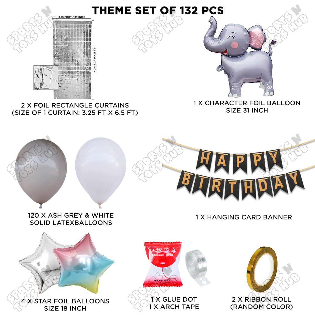 Elephant Cartoon Foil Balloon Stand Set With Happy Birthday Card Banner Arch Theme