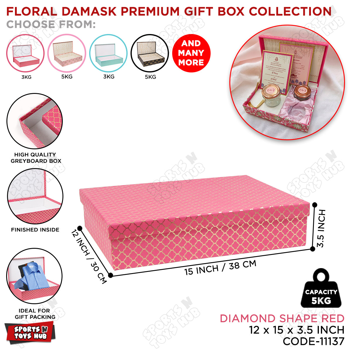 Discover the elegance and luxury of our Gold Damask Diamond Shape Gift Boxes Collection. Expertly crafted with detailed gold damask designs, these boxes are the perfect way to present your gifts. Available in a variety of sizes, they are perfect for any occasion and add a touch of sophistication to your gifting.