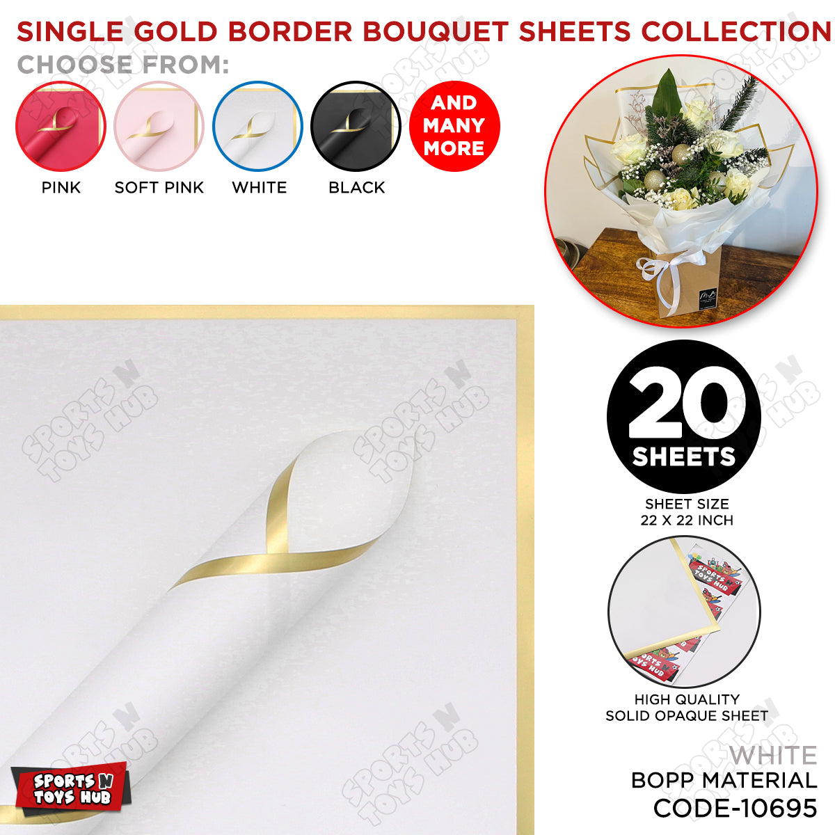 Plain Solid Opaque Single Sided Gold Border Bouquet Wrapping Sheets