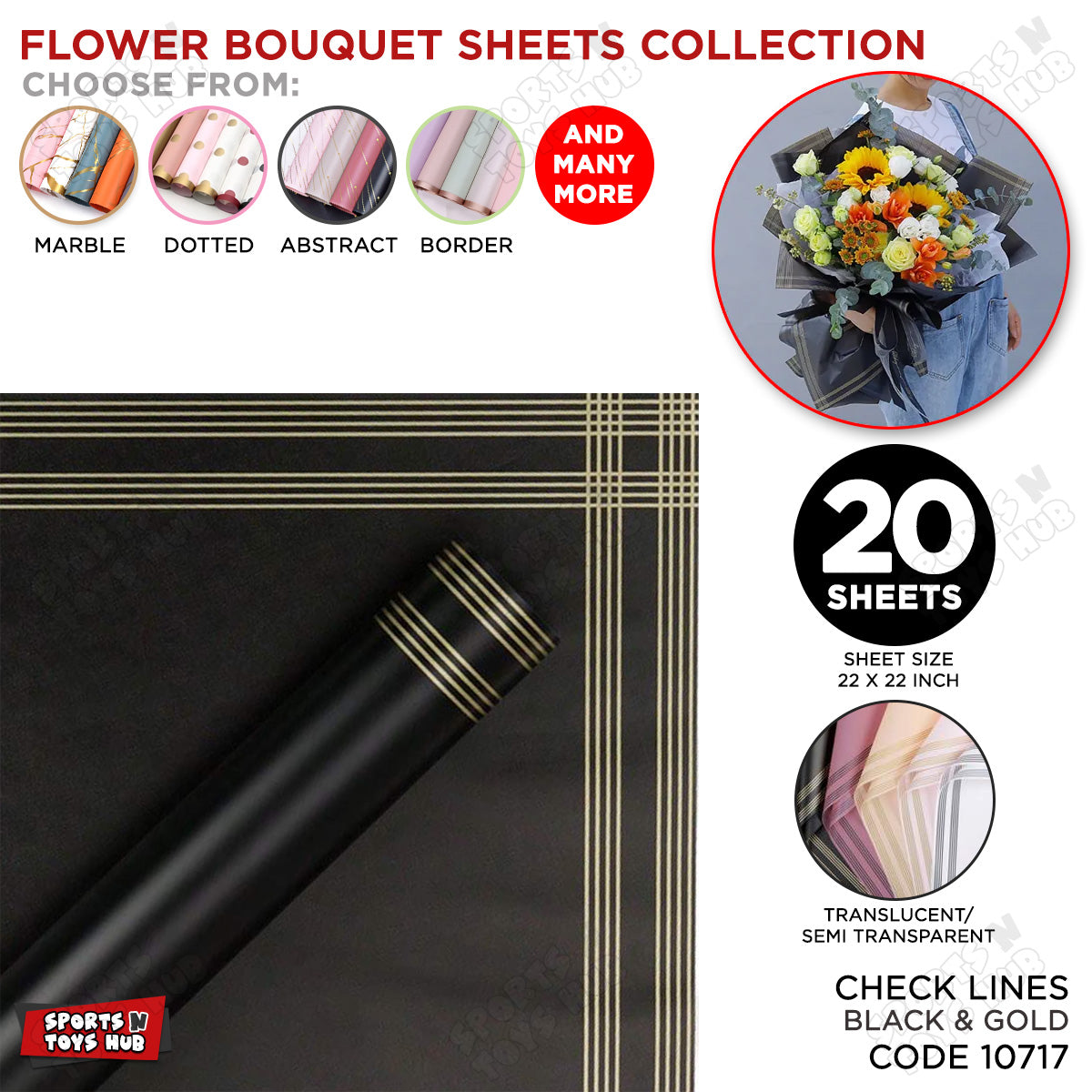 Flower Sheet Check Line Border Style, Floral Gifting Sheets Bouquet, Wrapping Paper Collections