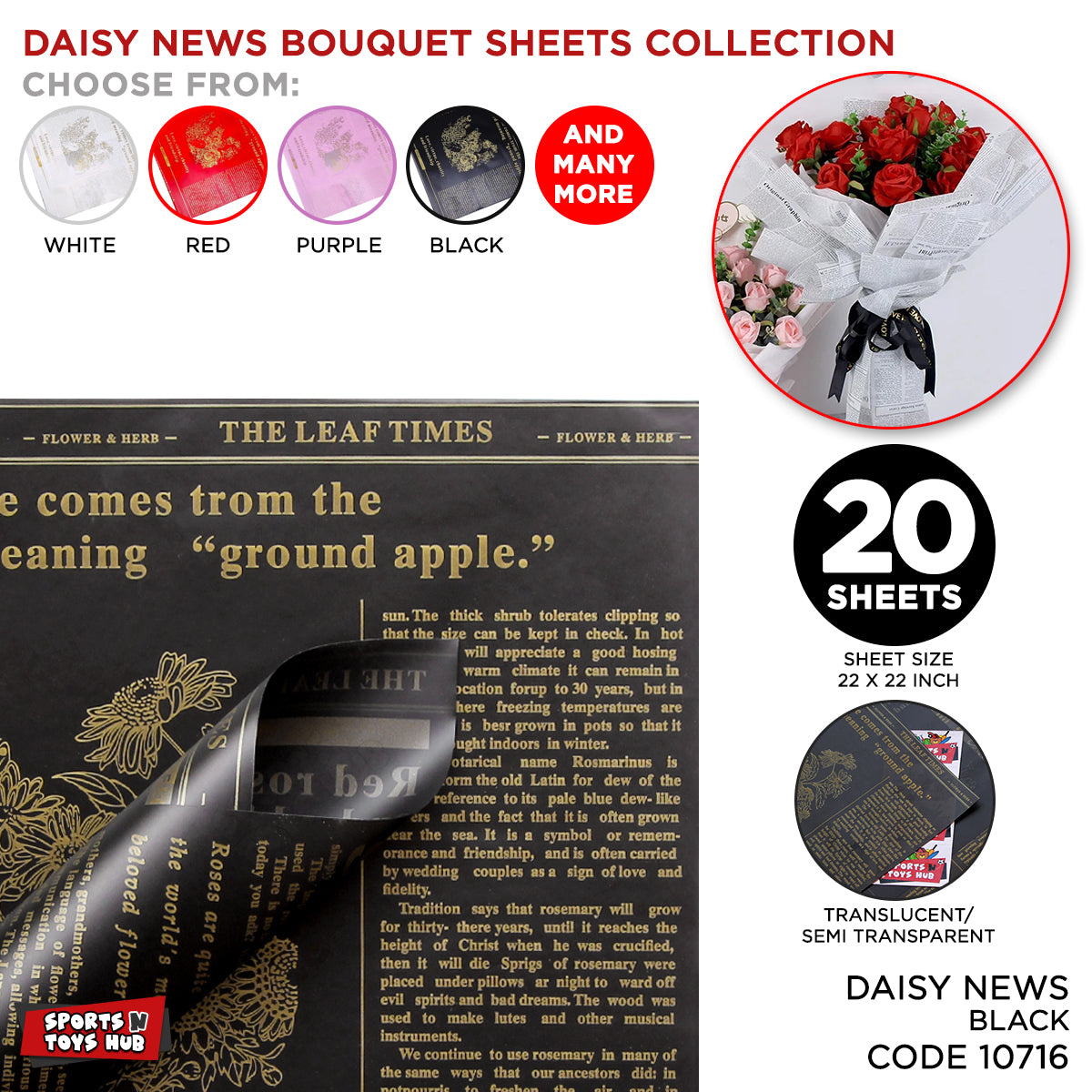Daisy Newspaper Flower Wrapping Sheet , Frosted Matte Wrapping Paper, Floral Gifting Sheets Bouquet Wraps