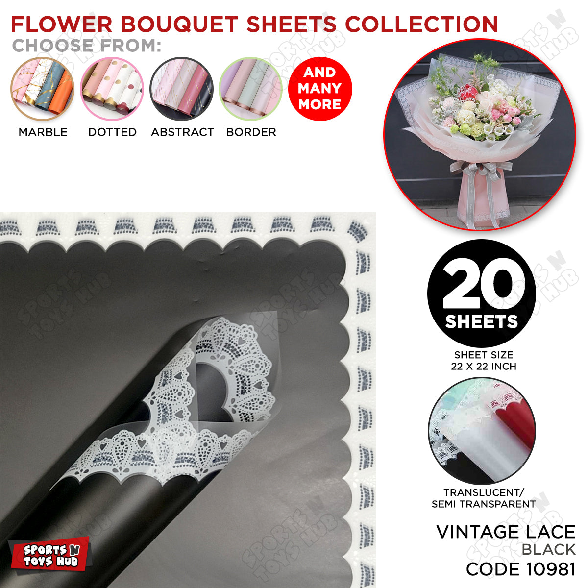 Flower Sheet Vintage Lance Border Style, Wrapping Paper, Floral Gifting Sheets Bouquet Collection