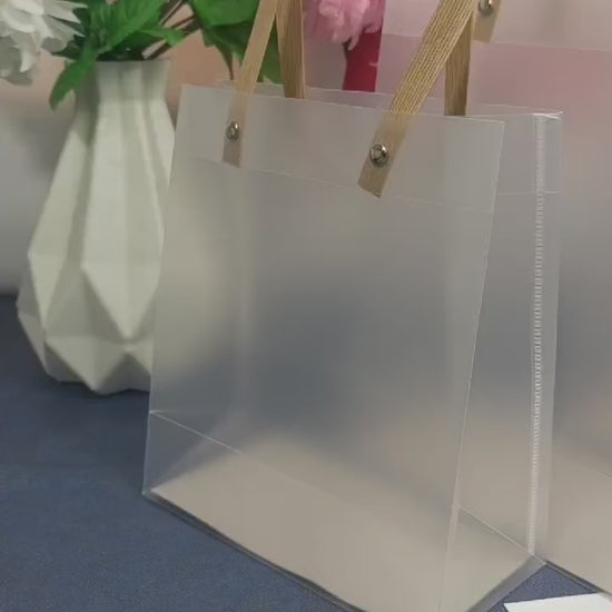 Perfect for brands, celebrations, and thoughtful gifting — these Frosted PVC Gift Bags add a refined touch to every presentation.