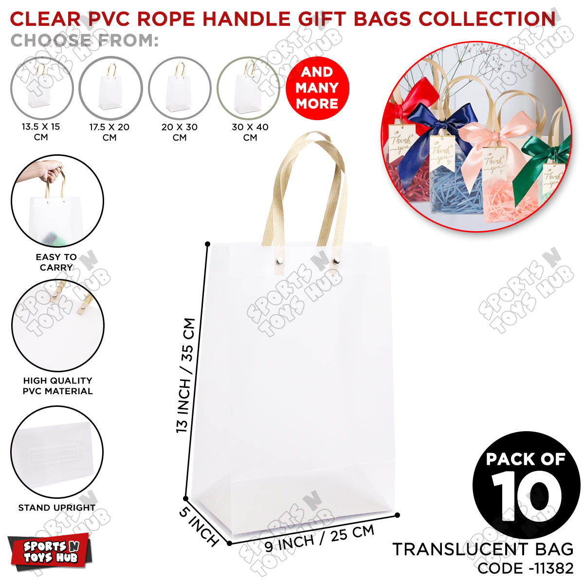 Frosted PVC 35x25x10 Cm Translucent Tote Gift Bags with Flat Paper Rope Handles – Pack of 10