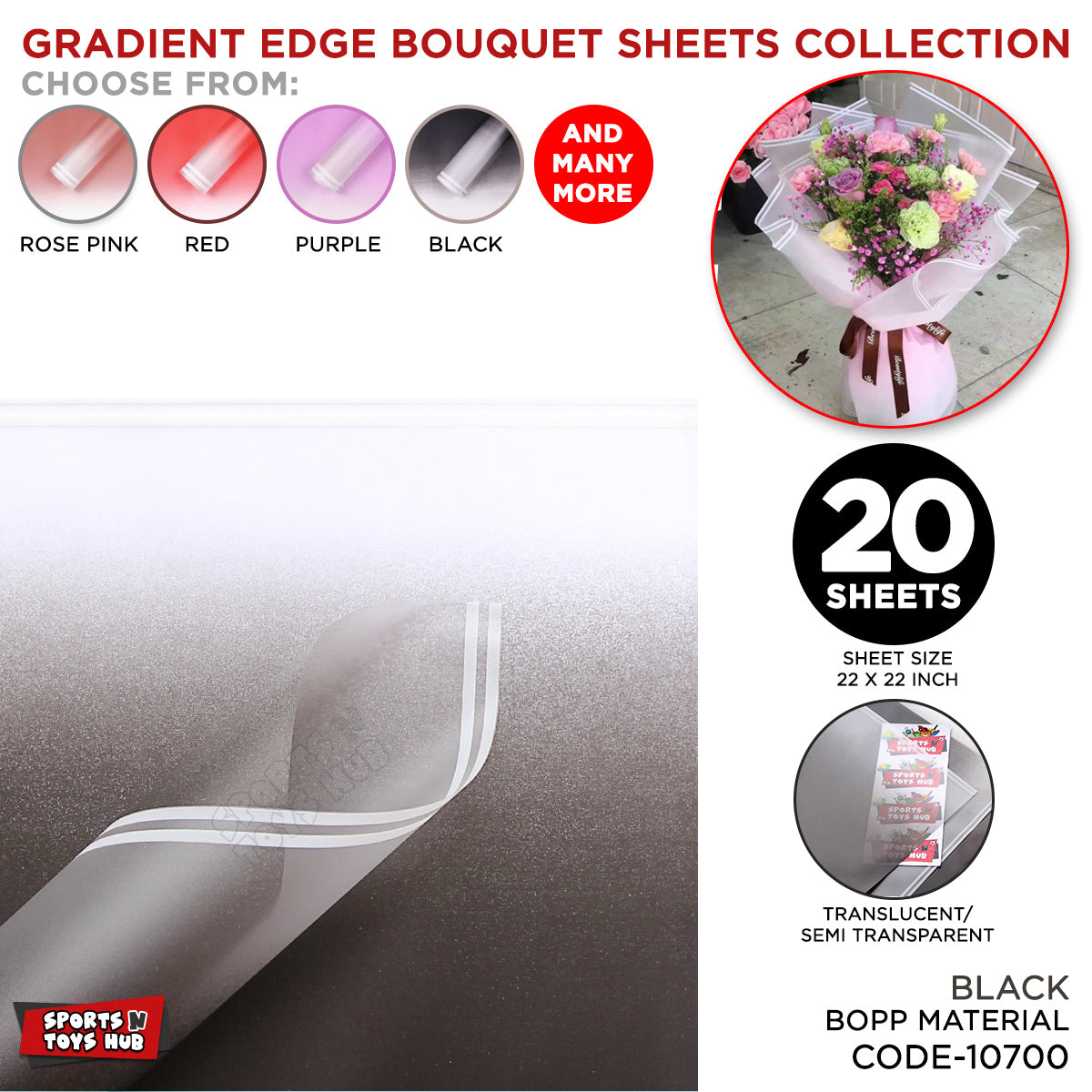 Gradient Edge Solid to Clear with Dual Pin Lines Translucent Bouquet Wrapping Sheets