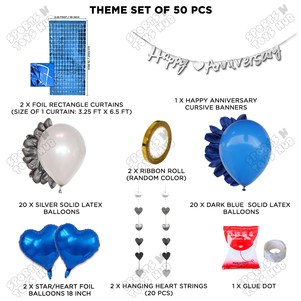 Celebrate your special day with our Happy Anniversary Silver Cursive Banner Collection. This elegant and modern set features a beautiful silver cursive banner and rectangle curtain theme that will add the perfect touch to your anniversary celebration. Made with high-quality materials, this collection is built to last and make your anniversary unforgettable.