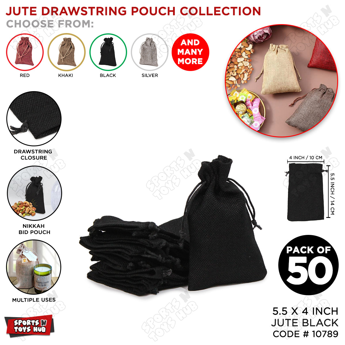 Add a rustic, elegant touch to your special occasions with our versatile Jute Drawstring Pouch Collection. This set of 50 high-quality, eco-friendly pouches is perfect for a wide range of events and celebrations. Crafted from durable natural jute fabric, these pouches feature a convenient drawstring closure, ensuring your items stay secure while adding charm to your gifts and decor.