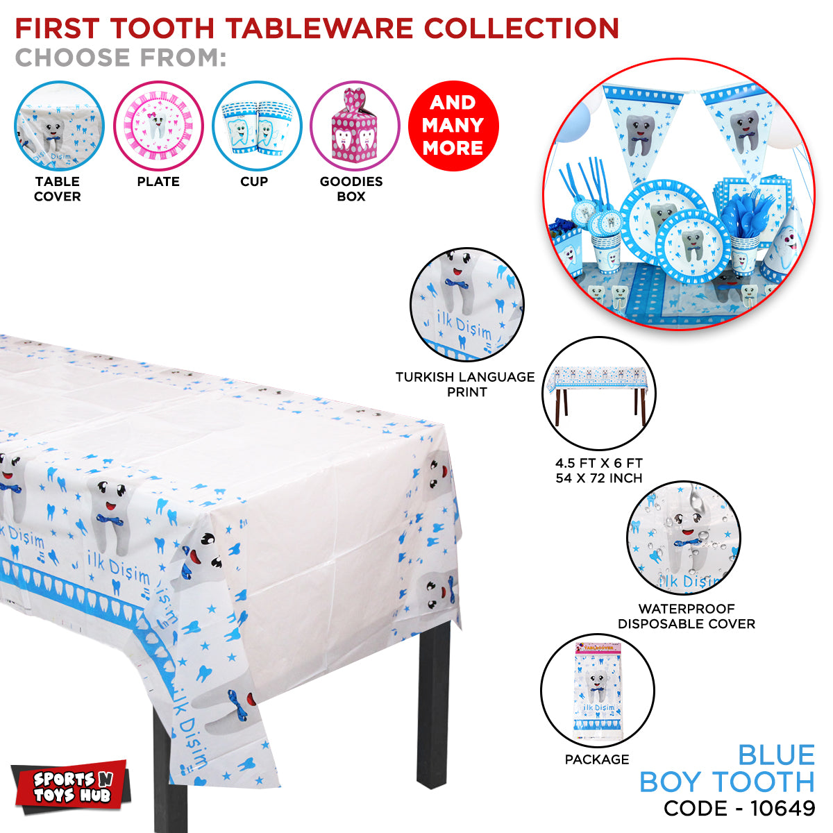 Introducing the First Tooth Printed Table Cover Collection - a stylish and practical way to protect your tables! Made with durable material, this collection features a charming "first tooth" print that adds a touch of whimsy to any event. Perfect for baby showers, birthdays, or any special occasion. Keep your tables safe and add a touch of fun with this collection.