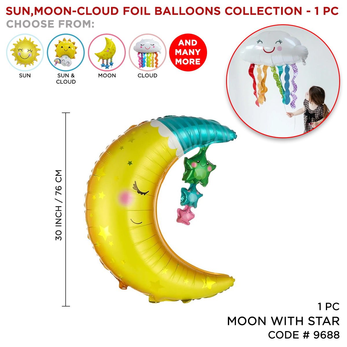 Experience the beauty of the sky with our Sun Moon & Cloud Foil Balloon Collection. This stunning collection features a variety of balloons, including suns, moons, and clouds, to create a whimsical and celestial atmosphere. Perfect for parties, weddings, and events, these balloons will add a touch of magic to any occasion.