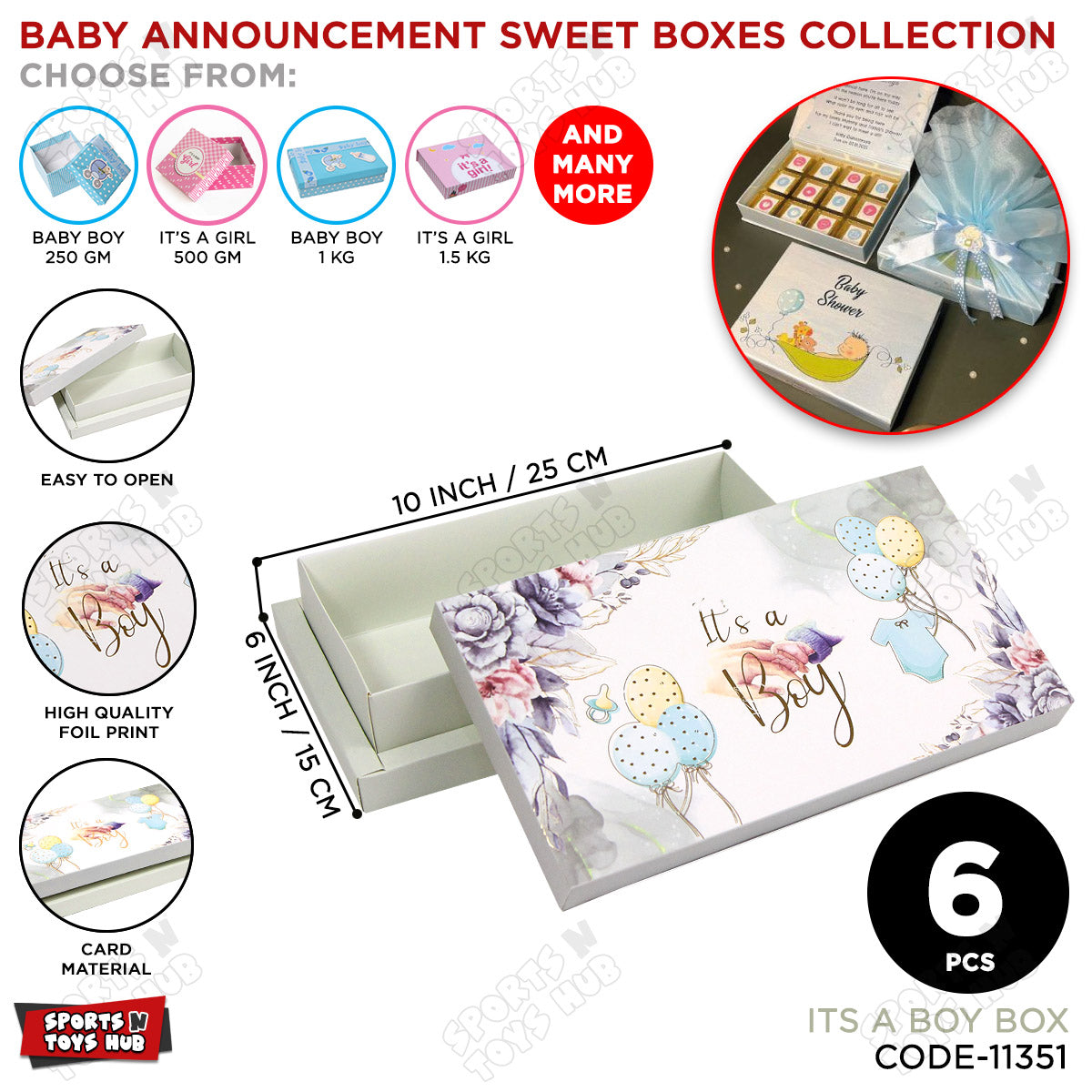 Pack Of 6 Its A Boy Box - 10x6 Inch