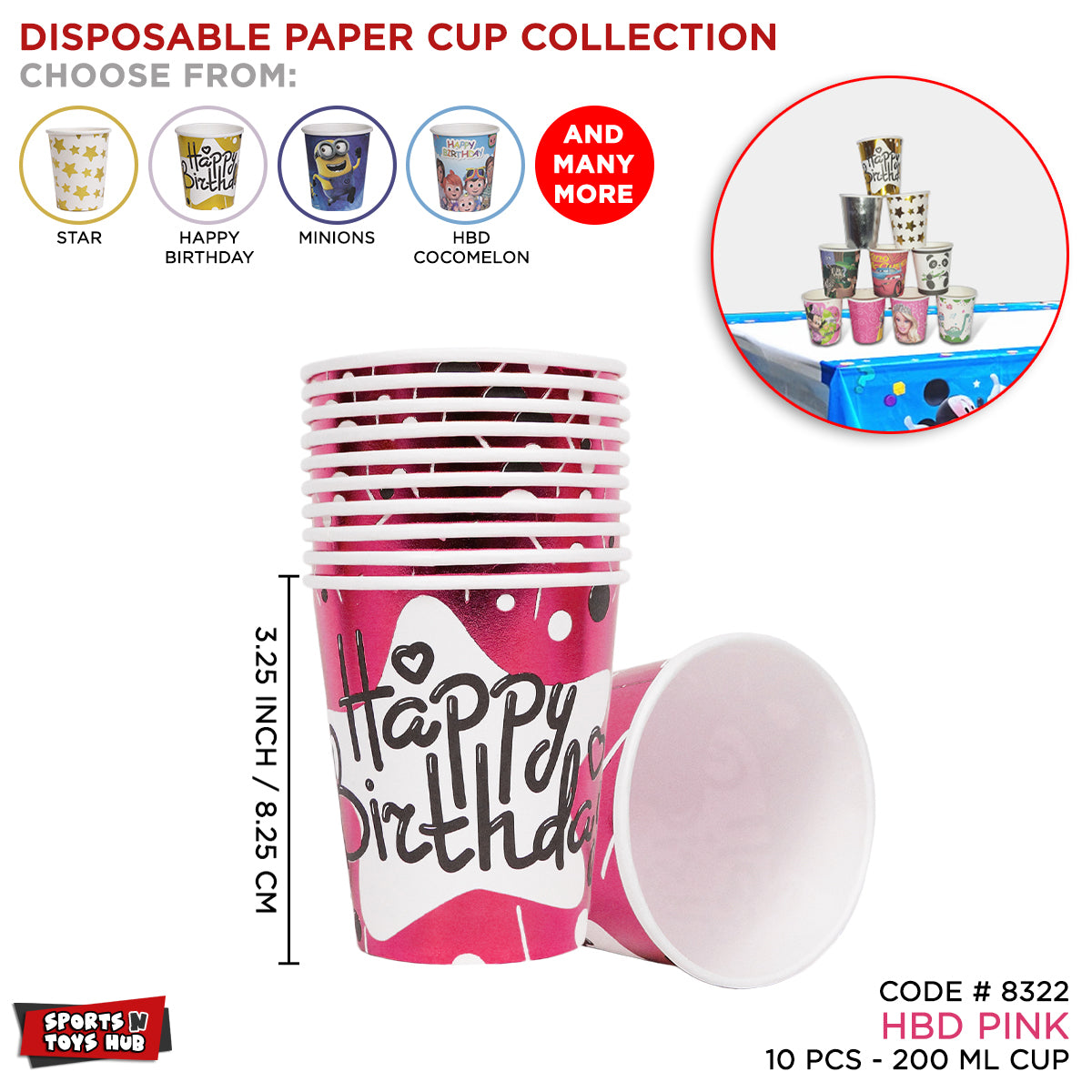 Pink Shinny Happy Birthday Printed Plates & Glasses - 10 Pcs