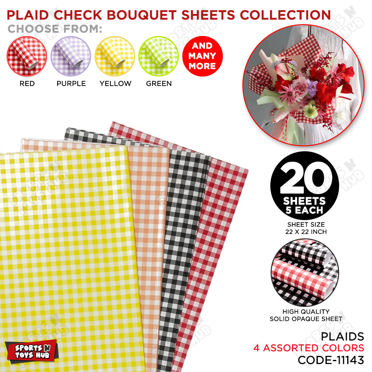 Plaid Checks Flower - Mix Color 20 Sheet Pack - Solid Opaque Wrapping Bouquet Sheets