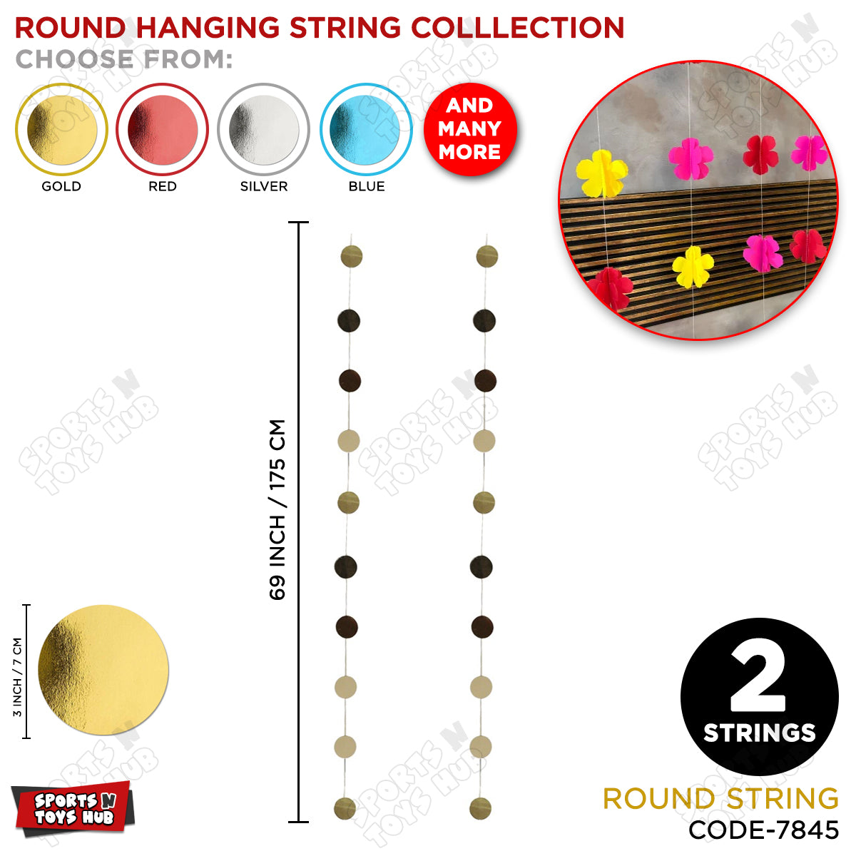 Enhance your décor effortlessly with this pack of two Round Shape Hanging Strings. Crafted for versatility, these strings feature elegant round shapes that add a modern and stylish accent to any setting. Perfect for celebrations, home decoration, or retail displays, they provide a refined and subtle way to elevate your environment with clean, geometric charm.